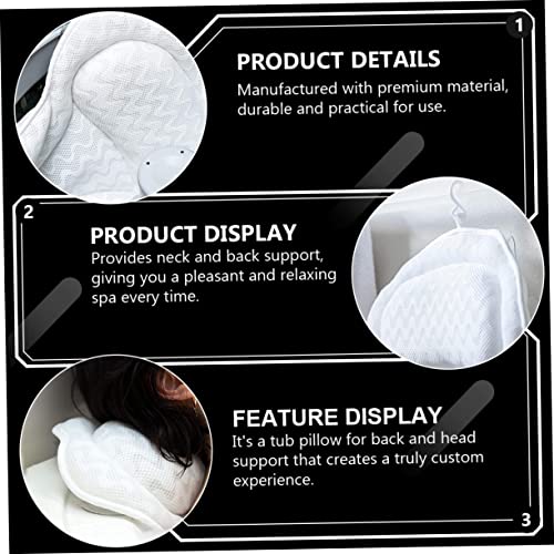 Mesh Cloth Tub Pillow The pillow for the bathtub supports the head, neck, and shoulder areas for comfort and helps you deeply relax.Bathing Pillow Equipped with rational size and , prevents the pillow from falling off and increases your bath experience.Suction Cup Bathtub Pillow A nice helper for your daily bathing