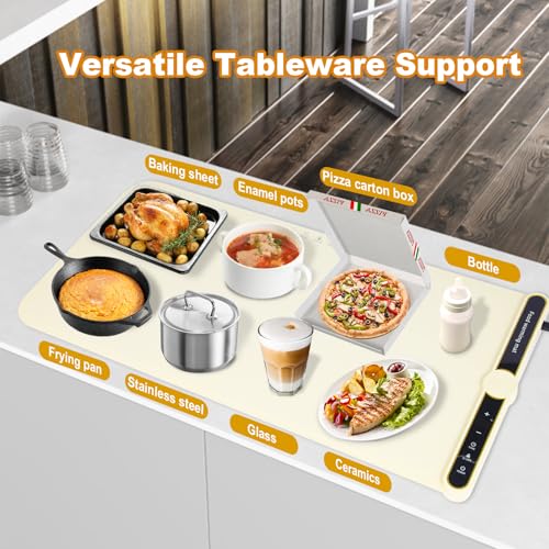 Safety & Convenience Features: The food warmer mat includes a child lock and an auto-off function after 18 hours of inactivity; The heating mat for food can also be set on a timer to switch off automatically, ensuring safety while enjoying convenience