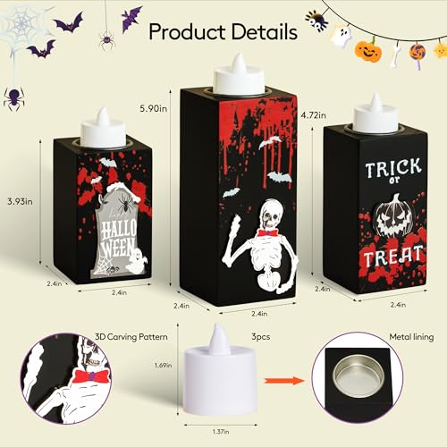 BlcTec 3 PCS 4th of July Decorations, Patriotic Wooden Candle Holder Table Centerpieces with Operated Tea Lights for Memorial Day Independence Day Table Tiered Tray Décor