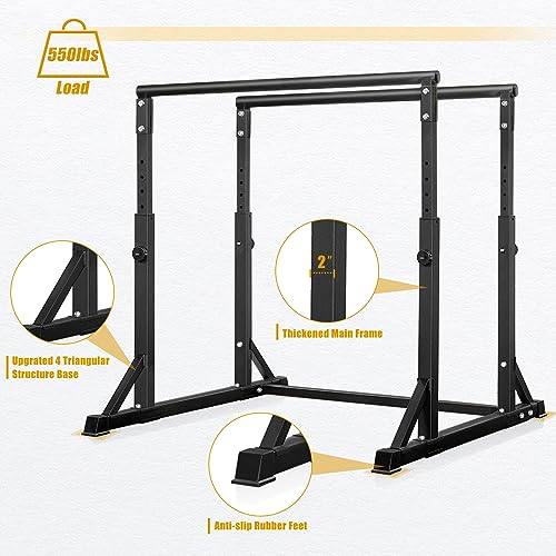 Bongkim Dip Bar, Heavy Duty Dip Station with 7 Height Levels, 800lbs Adjustable Parallel Bars for Tricep Dips Pull-Ups L-Sits Calisthenics Exercises Strength Training for Home Gym Outdoor