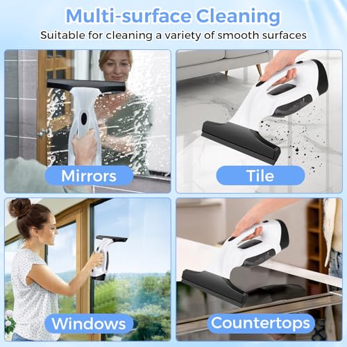 Cordless Window Vacuum Cleaner, Window Cleaner Squeegee Tool Set, Electric Windown Spray Cleaning Tool with 10 inch Squeegee Blade for Showers,Mirrors,Glass,Countertops,and Tiles, 2200mAh