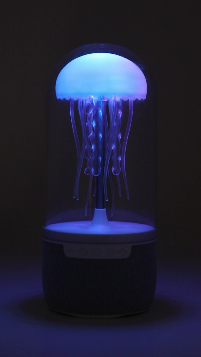 Dive in to a mesmerizing experience where technology meets a captivating design. Our Jellyfish mood lamp speaker is not just a source of light and sound, it also transform any space in to a tranquil underwater oasis. At its core are eight multi-color changing LED lights that mimic the gentle movements and beauty of jellyfish. The lifelike movement creates an ambiance that soothes your senses and stimulates relaxation. Our lamp features a built-in Bluetooth speaker which seamlessly intergrades sound with sight to elevate your experience. Stream your favorite music, podcasts, or meditation tracks, transporting you to a world of serenity.