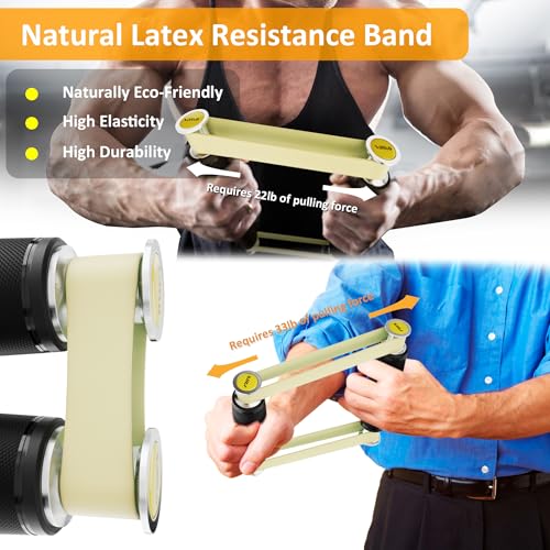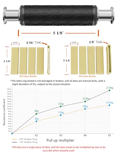Versatile Workouts & Rehabilitation Training: In addition to building arm strength and endurance, this product also aids in quick recovery from strains. It comes with two sizes of latex bands: 1/16″ thick bands provide 22lb-50lb resistance, and 1/8″ thick bands offer 35lb-77lb resistance. You can stack multiple bands on each side to push past higher resistance limits. Since it’s resistance-based training, it allows for gentler, more precise rehabilitation of injured muscles