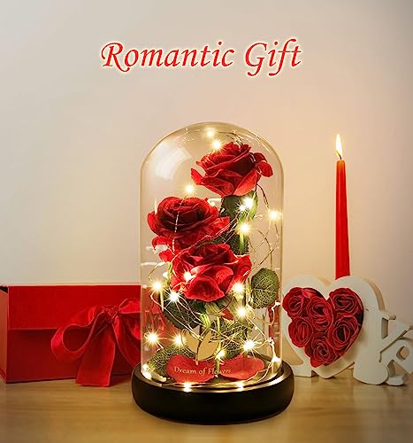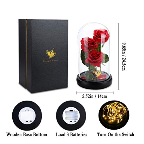 Specification: Women Gift Idea Birthday,Unique Gifts for Mom,Beauty and The Beast Rose in Glass Dome with 2 Lights Mode, Birthday Gifts for her,Anniversary Rose Gifts for Wife,Red Silk Rose Flower Gifts for Women